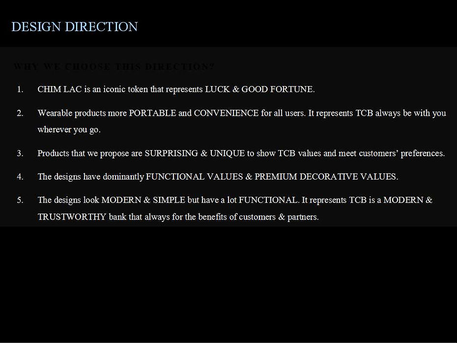 5.The designs look MODERN & SIMPLE but have a lot FUNCTIONAL. It represents TCB is a MODERN & TRUSTWORTHY bank that always for the benefits of customers & partners.